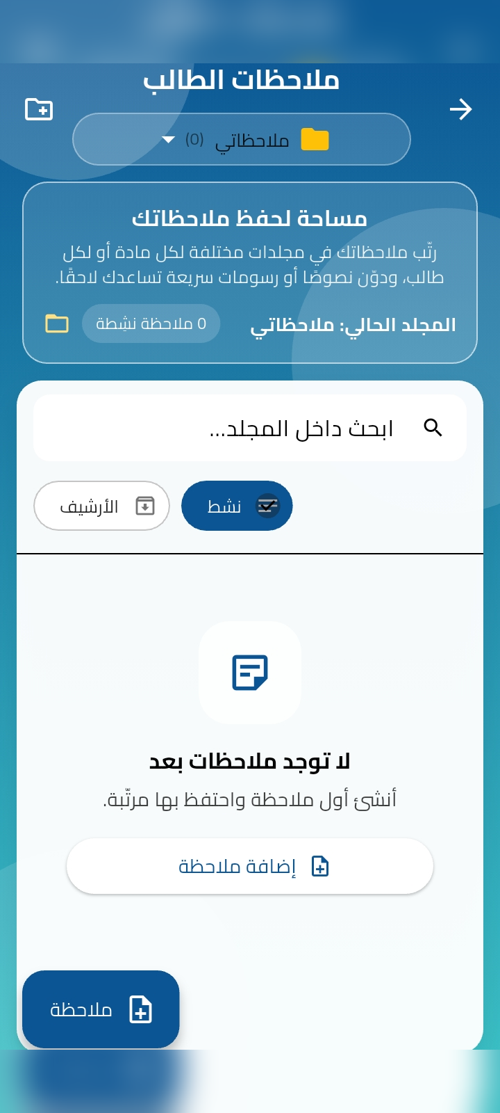 مجلدات + تثبيت + أرشفة + ألوان، لتبقى ملاحظاتك سهلة الوصول.