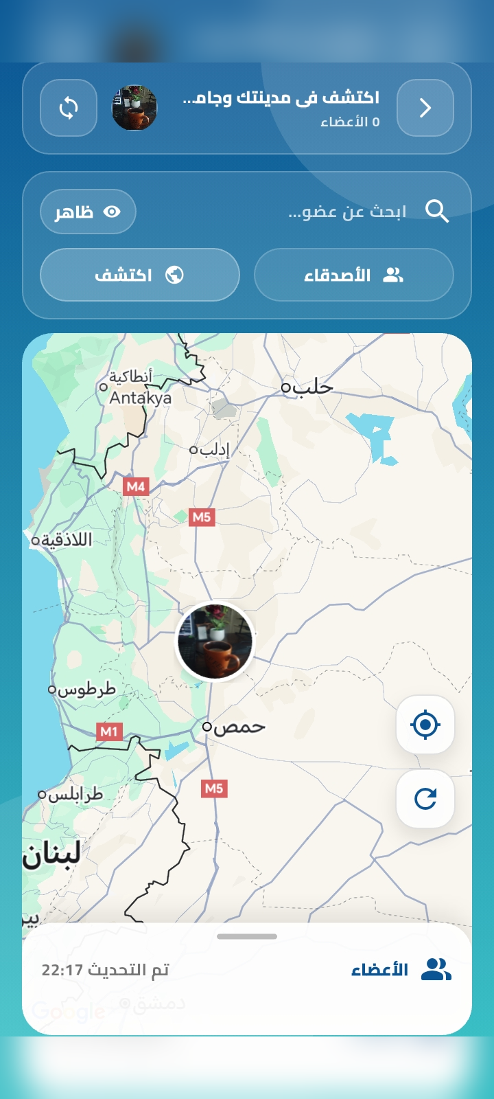 يمكنك التحكم بالظهور على الخريطة (أصدقاء فقط / وضع اكتشاف) حسب إعداداتك.