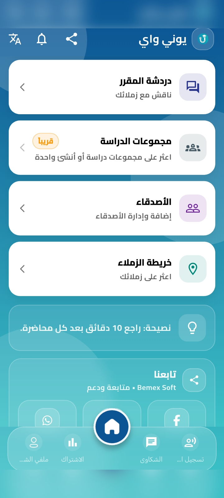 تعاون مع الزملاءمجموعات مذاكرة وشات جامعي وإشعارات